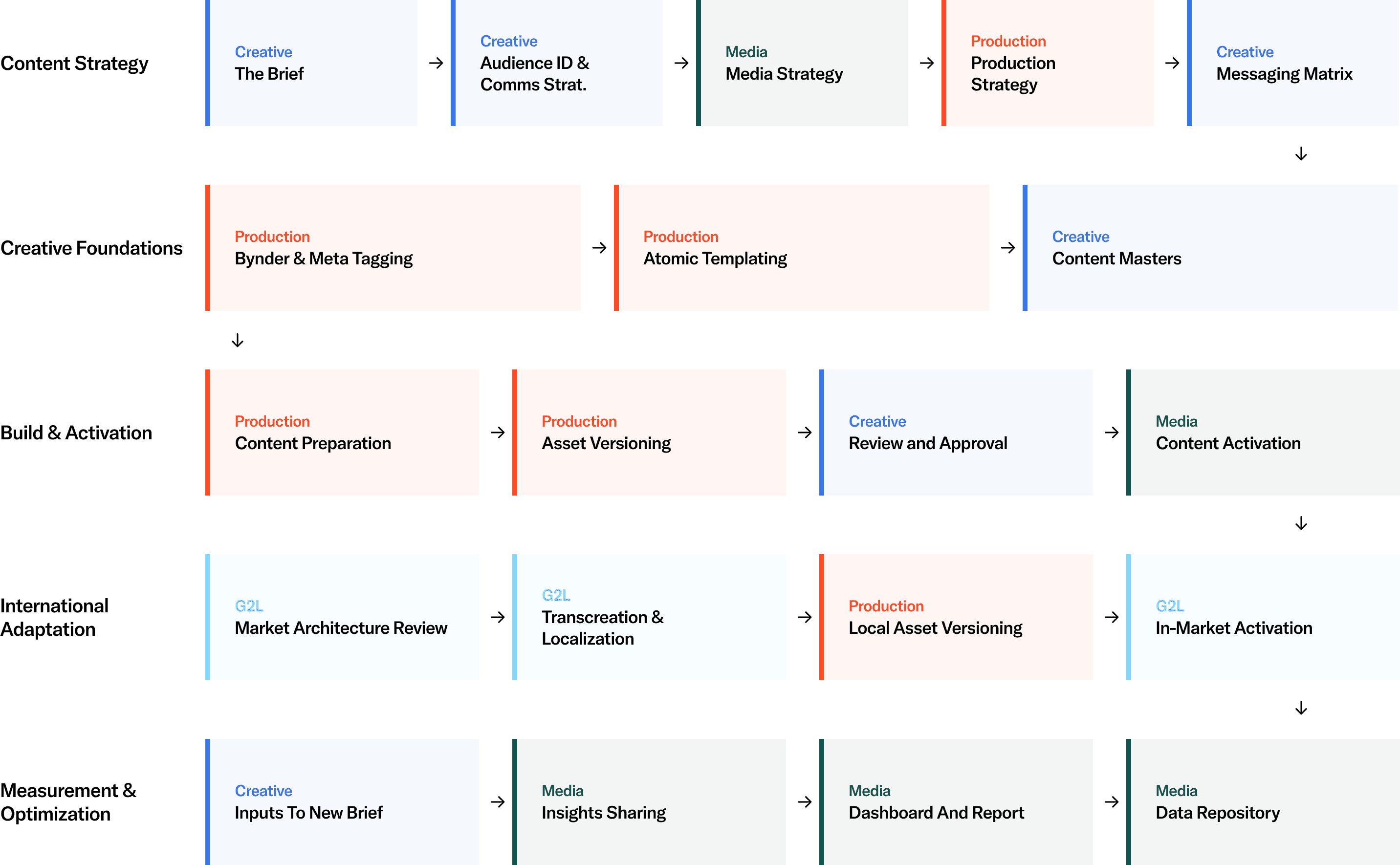 The right content, in the right channel, in the right market, at the right time. Same atomic model adapts for platform and for international transcreation.
